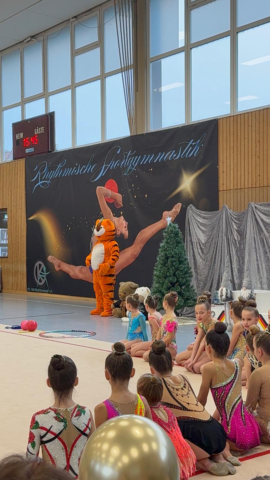 Das Weihnachtsturnier unserer Abteilung Rhythmische Sportgymnastik fand am 20. Dezember 2025 statt. Neun Mannschaften aus verschiedenen deutschen Städten nahmen teil, darunter Mainz, Koblenz, Höhr-Grenzhausen, Frankfurt am Main, Nürnberg und Saarbrücken. Unsere Turnerinnen hatten sich bestens vorbereitet; es war das letzte Turnier des Jahres 2025 und dann auch noch in der eigenen Halle. Insgesamt traten 110 Turnerinnen an den Wettkämpfen an. Unsere VfL 1848 Mädels belegten elf erste, sieben zweite und drei dritte Plätze. Hierzu gratulieren wir recht herzlich. Die Turnerinnen wurden mit Pokalen, Medaillen, Urkunden und wertvollen Geschenken ausgezeichnet.