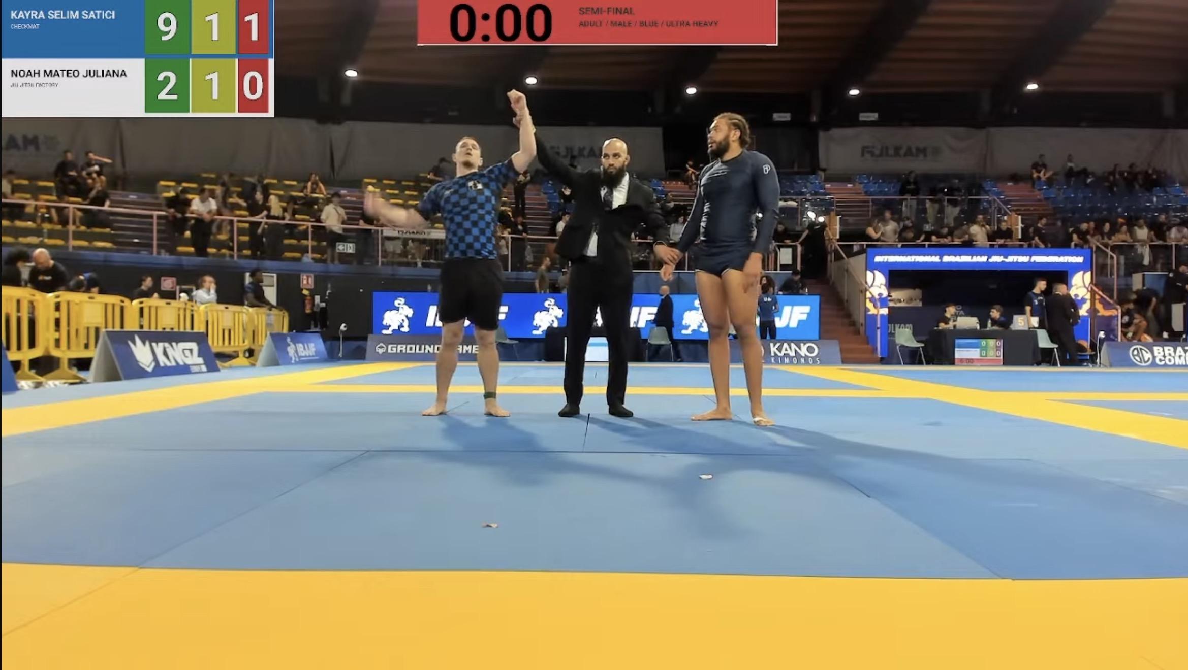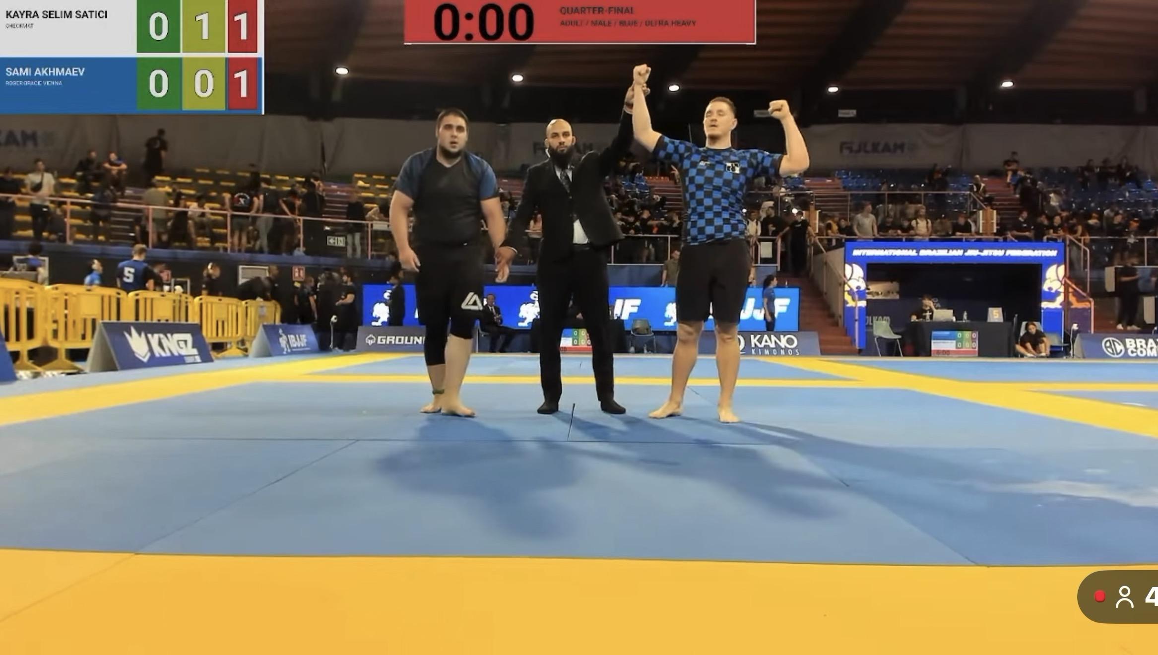 Am Mittwoch, den 29. Oktober 2024, nahm Kayra Selim Satici von Checkmat Bad Kreuznach bei der „IBJJF European no Gi Jiu-Jitsu Meisterschaft“ in Rom teil. In der Klasse male/adult/bluebelt/superheavy erreichte er nach drei Kämpfen das Finale und sicherte sich dort den zweiten Platz. Der Finalkampf ging nach Punkten verloren, doch Kayra belegt damit den Titel des Vize-Europameisters.