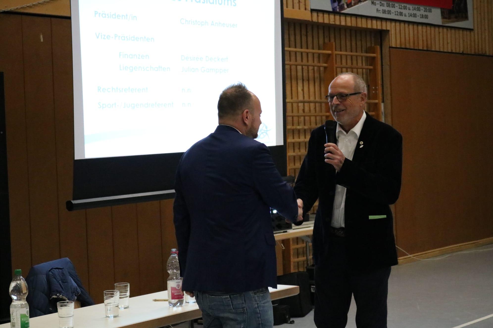 Nach den vorgestellten Berichten leitete Ehrenpräsident Edwin Beißmann durch die Entlastung des Vorstandes und die Neuwahl. Einstimmig wurde Herr Christoph Anheuser als Präsident, Frau Désirée Deckert als Vize-Präsidentin Finanzen und Herr Julian Gampper als Vize-Präsident Liegenschaften gewählt. Wir gratulieren dem neuen Präsidium recht herzlich zur erfolgten Wahl!