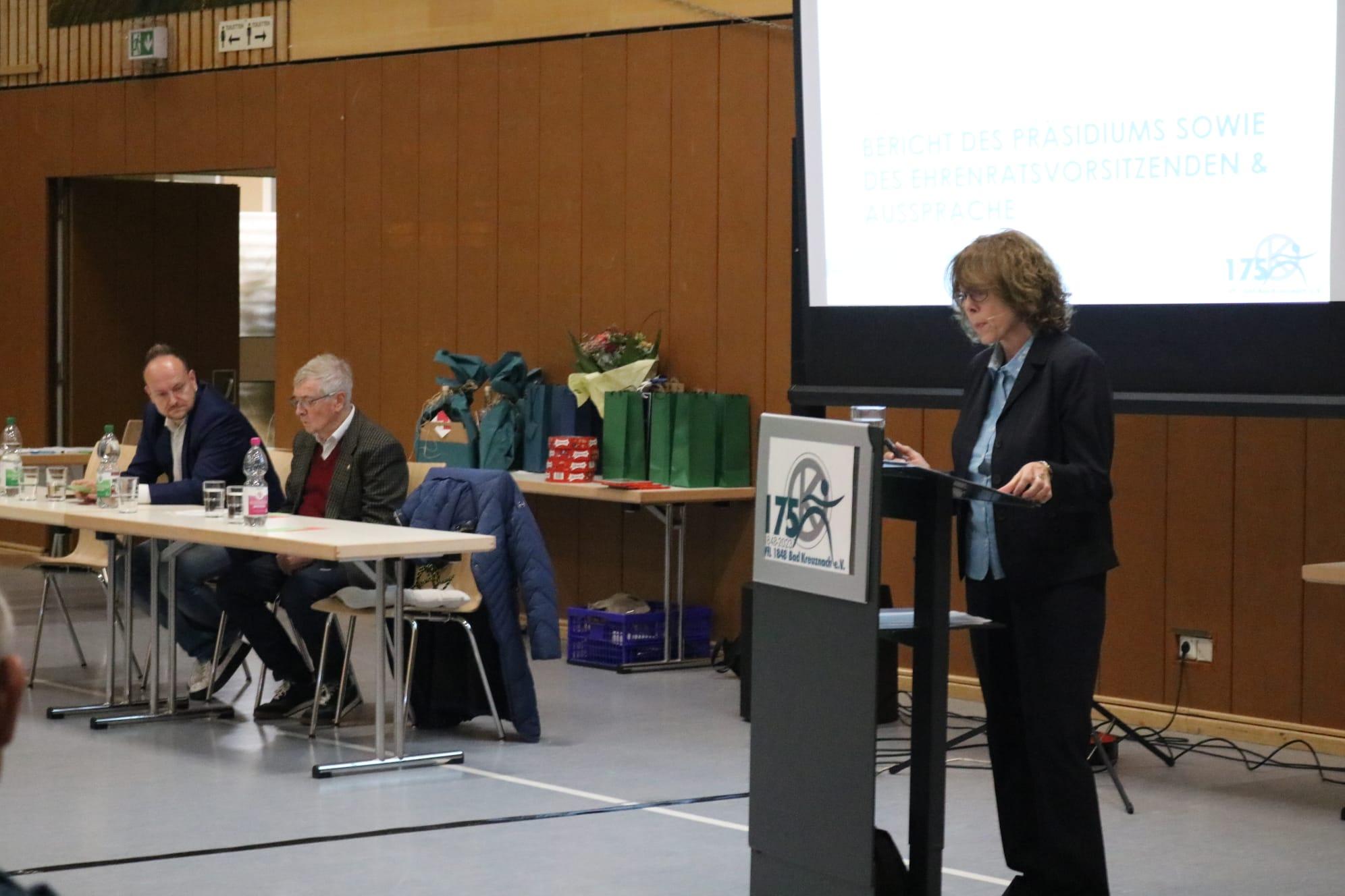 Bevor es jedoch zu den Neuwahlen des Präsidiums kam gab es den Bericht des Präsidiums vorgestellt durch Heike Bruckner. Hier fasste sie die vergangenen drei Jahren mit allen Höhen und Tiefen, sowie Herausforderungen zusammen. Sie blickt mit einem lachenden und weinenden Auge auf die vergangenen 14 Jahre zurück und ist stolz darauf, wie der Verein sich in den Jahren stetig weiterentwickelt hat. Auch Karltheo Walter fasste die vergangenen Jahre als Vorsitzender des Ehrenrates zusammen. Er dankte Heike Bruckner für ihr Engagement und Zeit. Daraufhin folgte der Kassenbericht mit dem Bericht der Kassenprüfer.