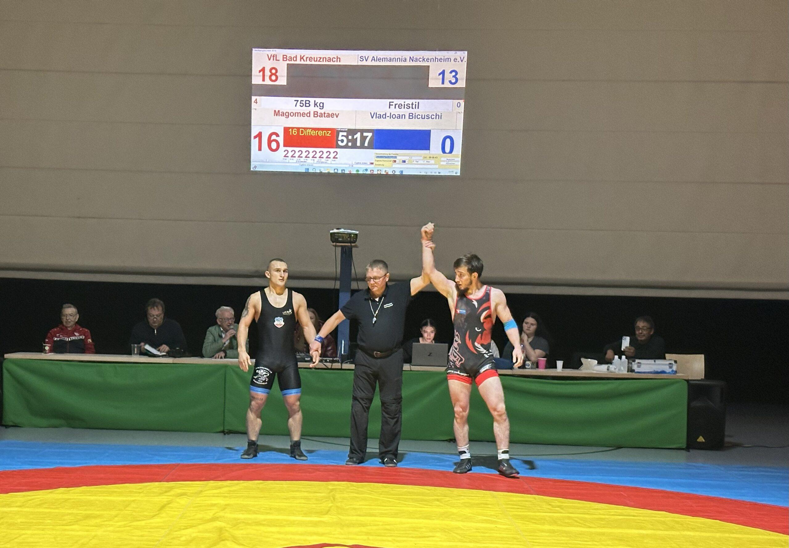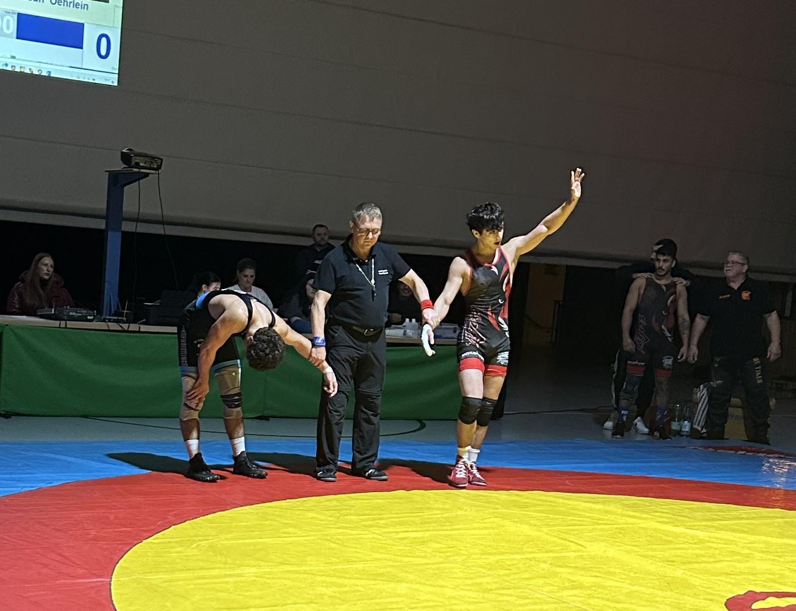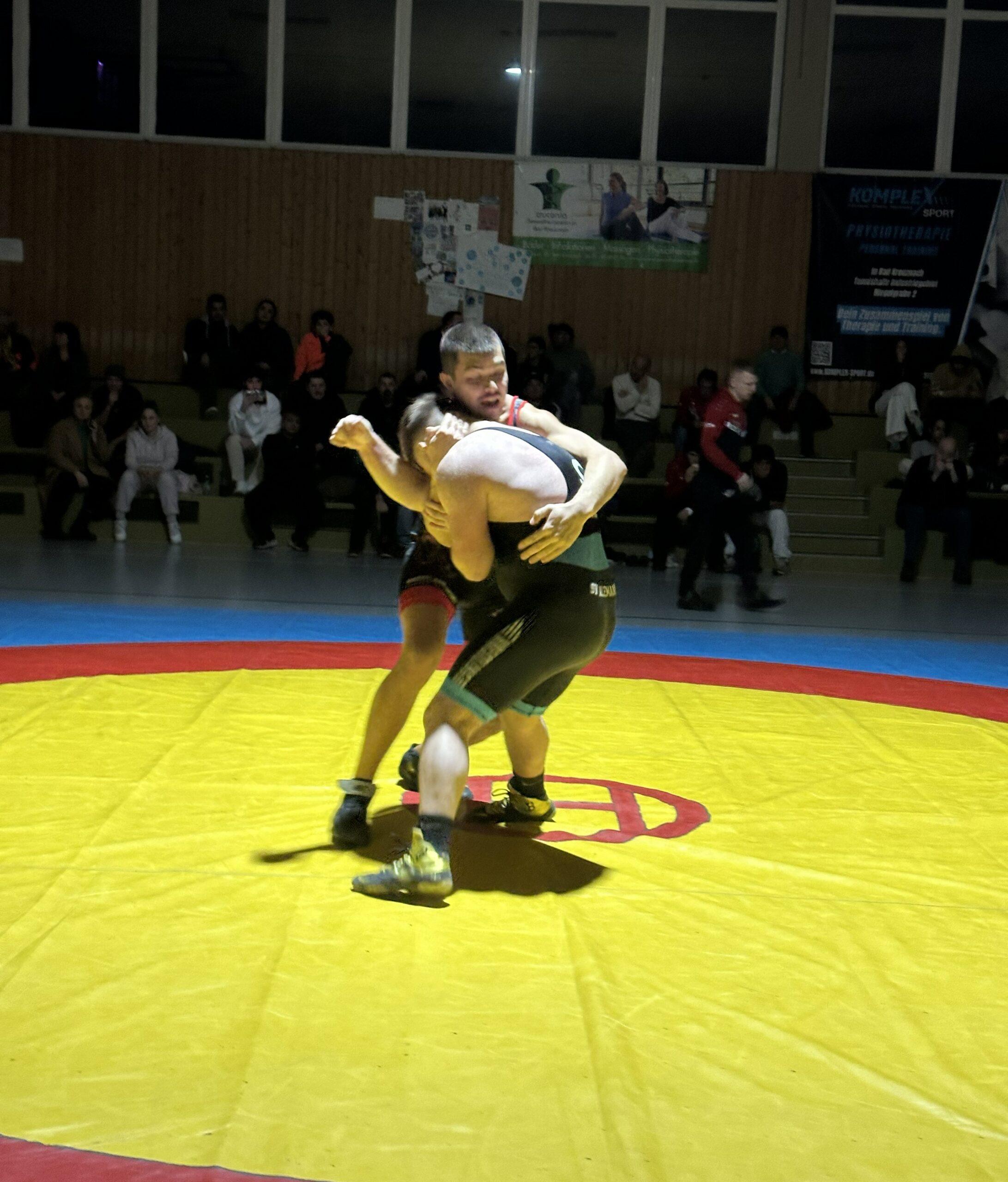 Kevin Haaf (98 kg griechisch-römisch) riss das Momentum sofort wieder auf die Kreuznacher Seite. Mit 17:1 spielte er seine technische Klasse aus und ließ Bekir Demir keine Chance. Pure Dominanz.