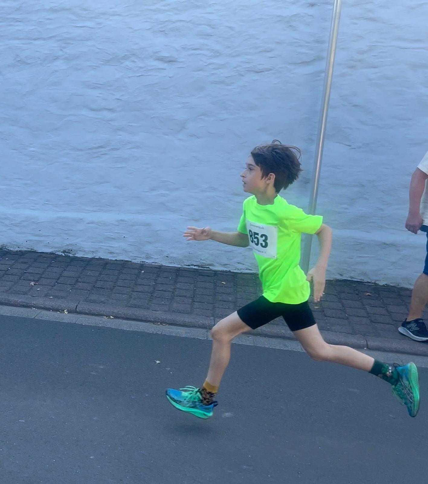 Im Kinderlauf über 650m setzte sich Veit gegen ein starkes Teilnehmerfeld von 61 Kindern durch und sicherte sich den 1. Platz mit einer Zeit von 2:14 Minuten.