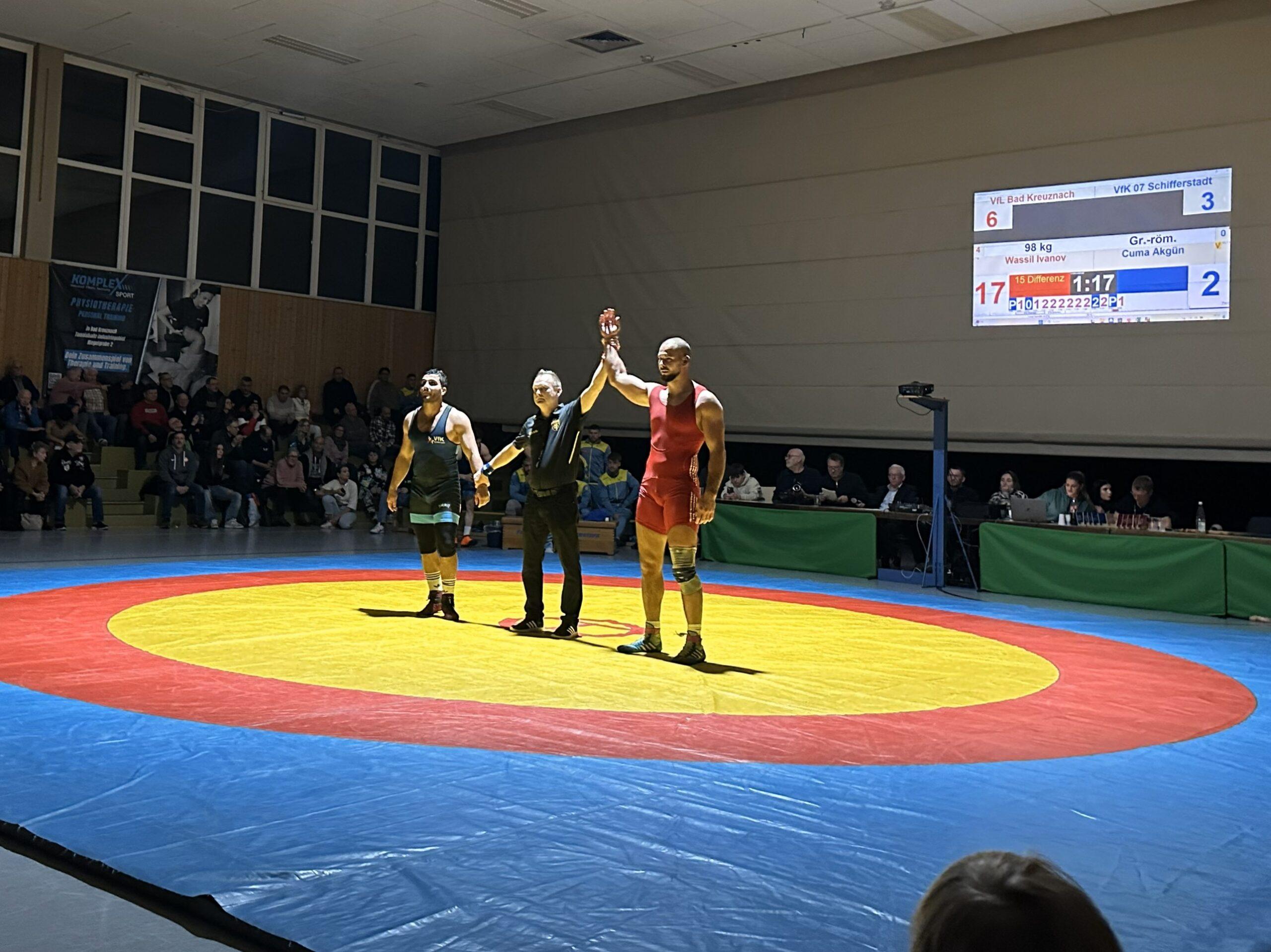 Es war einer dieser Abende, an denen man schon beim Betreten der Jakob-Kiefer-Halle spürte: Heute geht es um mehr als nur zwei Punkte. Erster gegen Zweiter, ein echtes Spitzenduell am 12. Kampftag der ARGE Rheinland-Pfalz-Liga. Und die Fans des VfL Bad Kreuznach sorgten für eine Atmosphäre, die selbst erfahrene Ringer kurz staunen ließ. Laut. Eng. Leidenschaftlich. Ringen pur.
